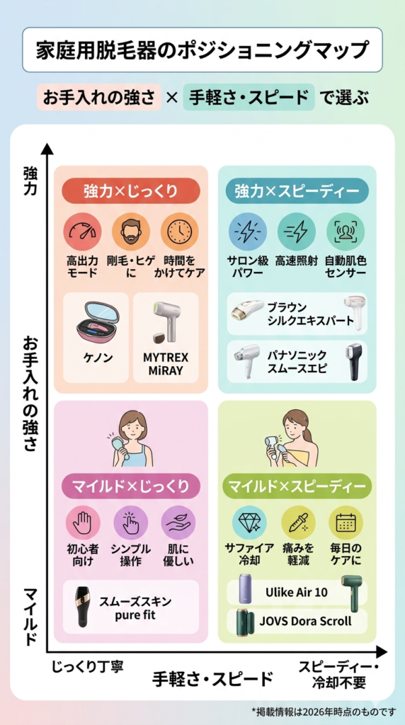 家庭用脱毛器は、「継続すること」が何より大切です。自分のライフスタイルや、痛みの許容範囲に合ったあなたにピッタリのモデルを見つけて、理想のツルスベ肌を手に入れてください。