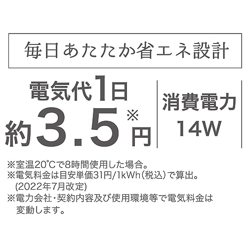 - 特徴:遠赤外線ヒーター内蔵。温度は自動調整で低温やけど防止。